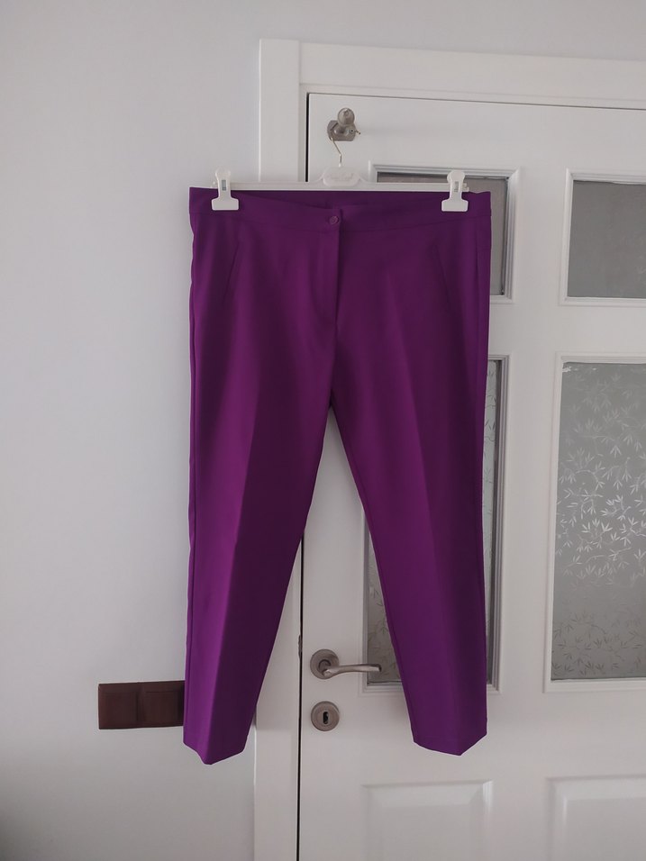 ForShe Marka, Mor, ipeksi kumaştan normal kesim kadın pantolon. Minimalist ofis stiline uygun.