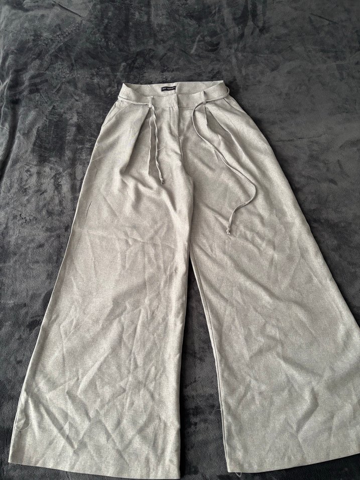 Gri salaş kesim geniş paça kadın pantolon. Rahat ve gündelik kullanıma uygun, zahmetsiz şıklık sunar. Yakışmadığı için giyilmedi