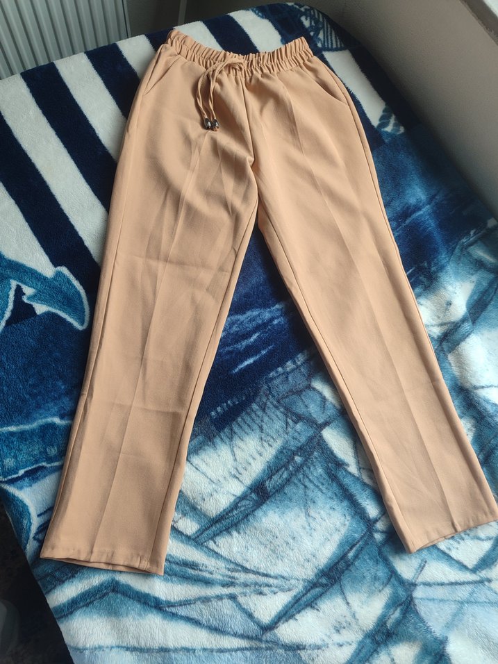 camel acık ton renkli, pilili tasarıma sahip kadın kumaş pantolon. Orta boy, rahat kesim ve sentetik dokusu ile günlük sokak stiline uygun pastel tonlarda. boy:89cm bel: 44cm ( lastiğin esnemiş hali)