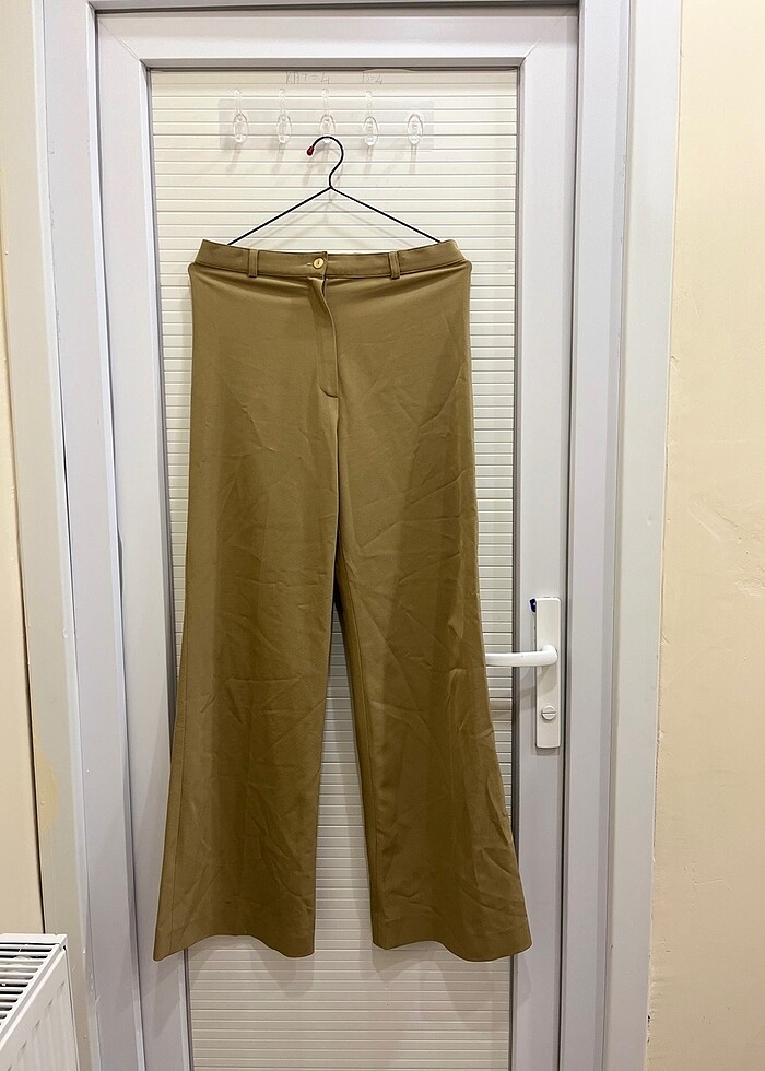 38 beden (s-m ile uyumlu), 1-2 defa kullanılmış, kahverengi uzun likralı kumaş pantolon