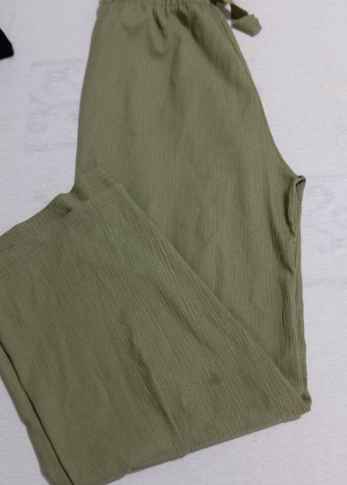 Yeşil yazlık ince kumaş pantolon