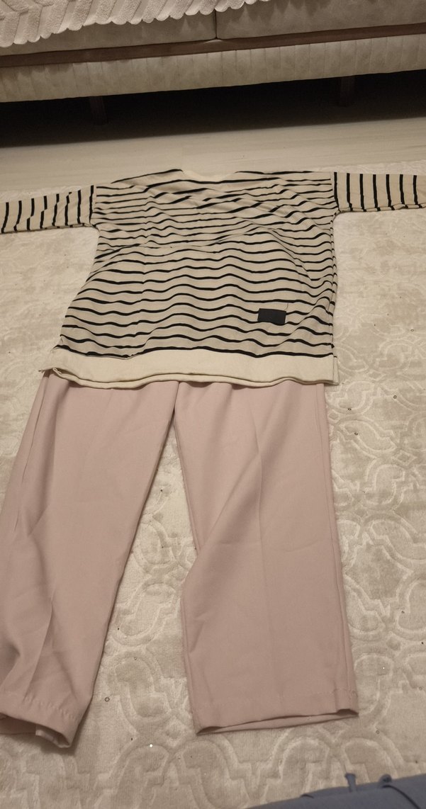 Pamuk kumaştan yapılmış, rahat kesim ve normal midi boyda bej hamile pantolonu.
