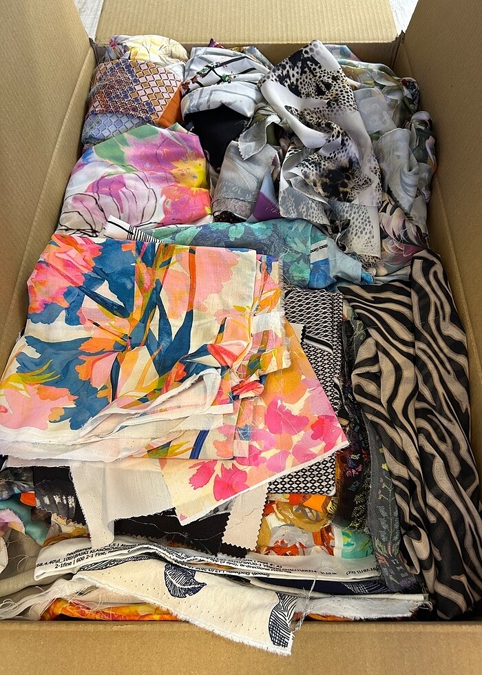 1 koli parça kumaş, 30 × 30 ,50 × 50 ,70x100, 70× 150 içlerinde çokça kumaş parçası mevcuttur . Her cinsten her kalınlıktan çeşit çeşit kumaş vardır. Kırkyama, Patchwork yapanlar için el işi yapanlar için idealdir