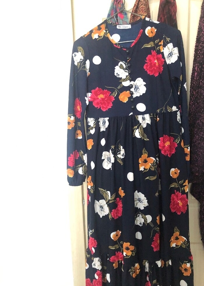Temiz ürün çiçeklı uzun elbise siyah elbise üzeri renkli çiçekli