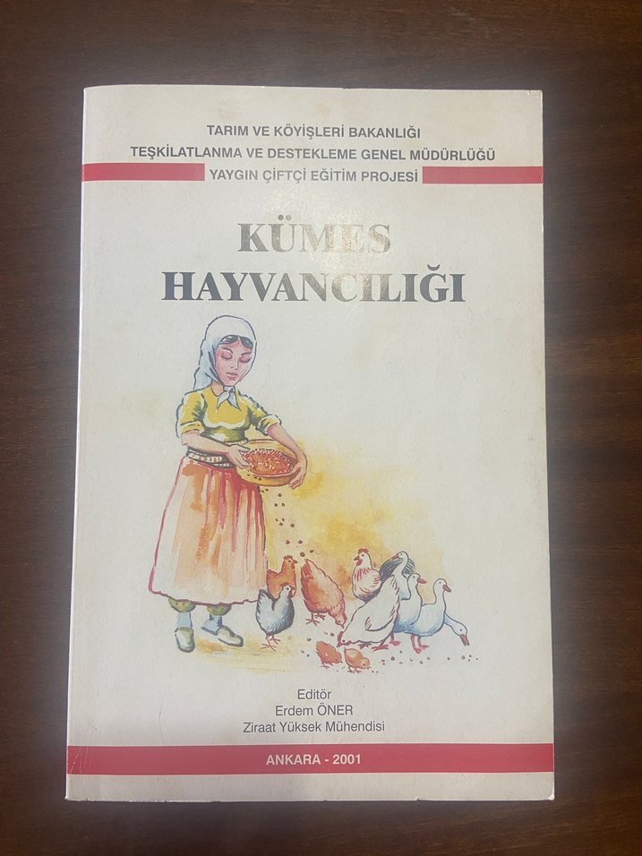 Tarım ve Köyişleri Bakanlığı tarafından 2001'de yayımlanan, Erdem Öner'in editörlüğünde kümes hayvancılığına dair bilgiler içeren eğitim kitabıdır. Yenidir, yırtık, yıpranma v.s. yoktur, fotoğraflarda kitabın yazar kadrosu, içerik/konu başlıklarını görebilirsiniz. İade kabul etmiyorum!