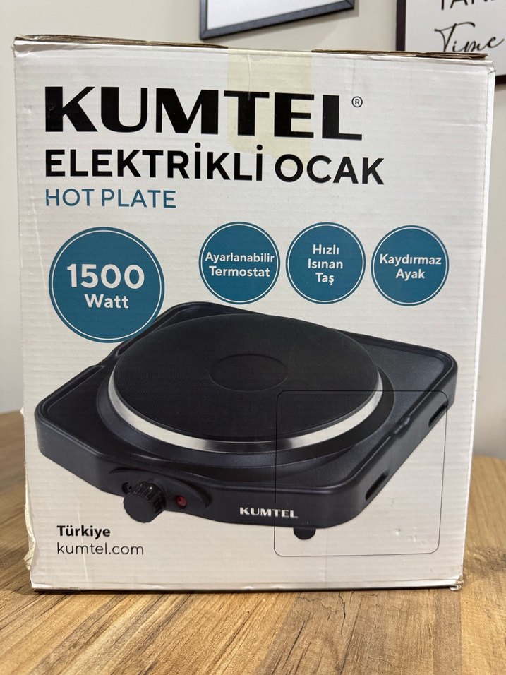 Kumtel elektrikli ocak, 1500 Watt gücü, ayarlanabilir termostatı, hızlı ısınan taşı ve kaydırmaz ayakları ile kullanışlıdır.
