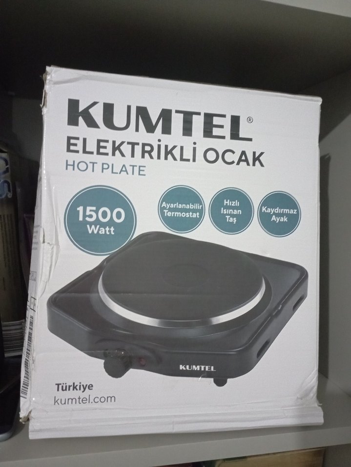 Kumtel elektrikli ocak 1500 watt gücünde, ayarlanabilir termostatlı, hızlı ısınan taş yüzeyli ve kaydırmaz ayaklara sahip siyah renkte bir üründür.