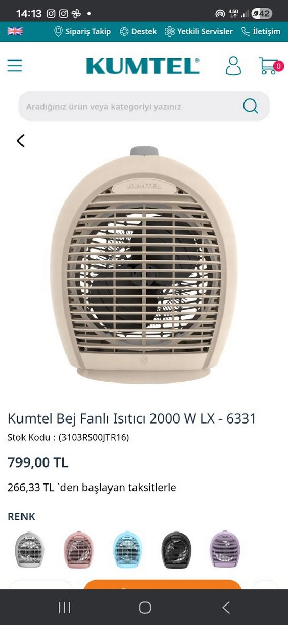Kumtel Bej Fanlı Isıtıcı 2000W LX-6331