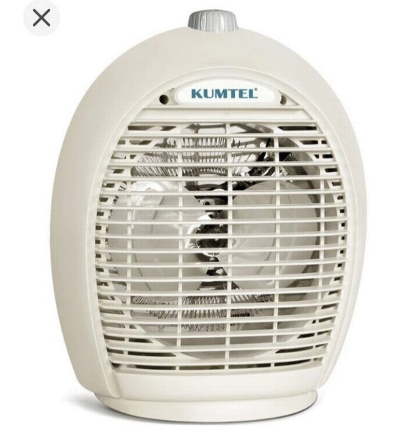 Kumtel markalı beyaz ısıtıcı, ön ızgara ve üstte sıcaklık ayar düğmesi ile kompakt tasarımda etkili ısı sağlar. Kumtel sıcak soğuk Fanlı Isıtıcı 2000 W