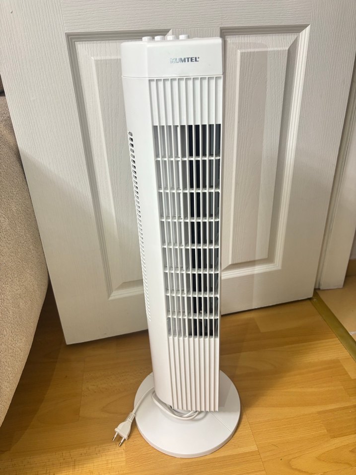 KUMTEL markalı beyaz dikey vantilatör, ince tasarımı ve ayarlanabilir hava akışı ile iç mekan kullanımı için uygundur. Stabil taban ve temizlemesi kolay ızgara içerir. ️