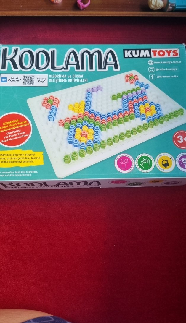 Kumtoys Kodlama, algoritma ve dikkat geliştiren renkli yerleştirme parçalarına sahip eğitici oyuncak. 3 yaş ve üzeri için uygundur.