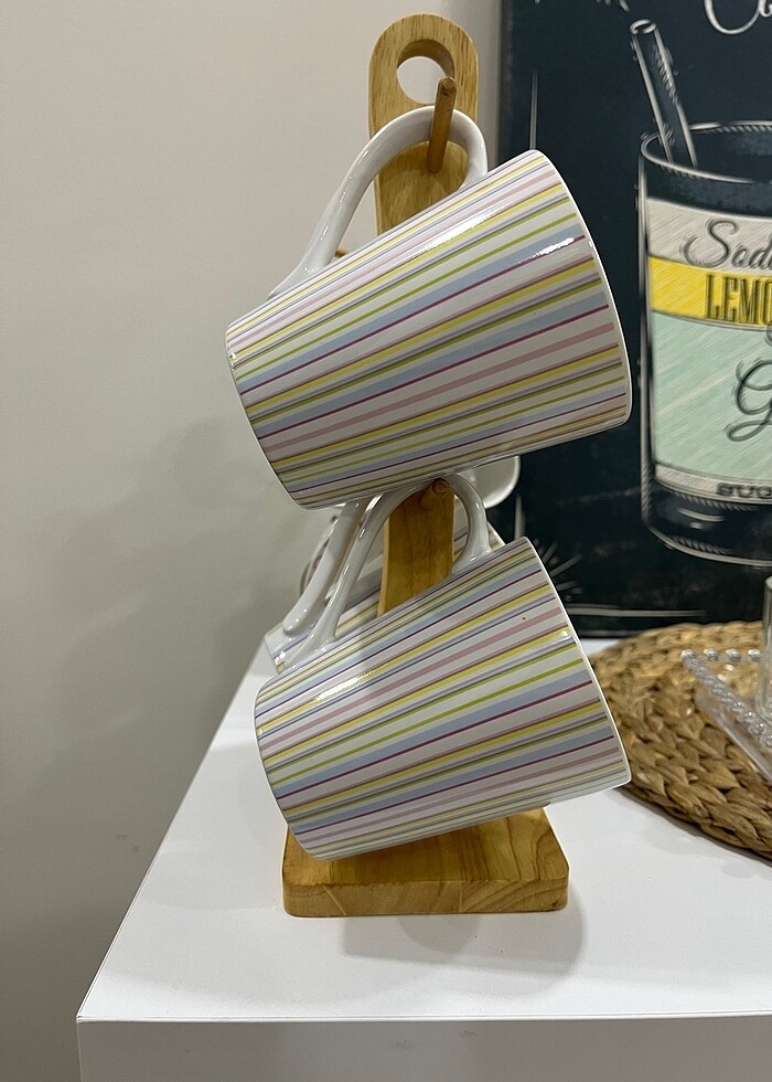 Biev marka ahşap standlı büyük kupa seti kırığı defosu yoktur
