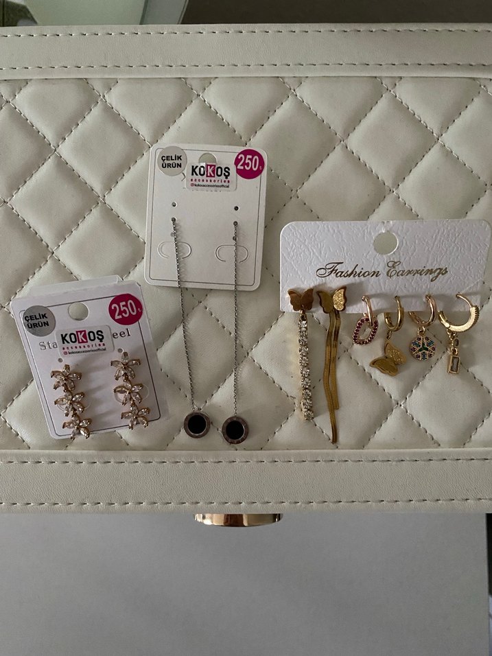 3 küpe çiftinin toplam fiyatıdır. Tertemiz,kullanılmadı. Elimden çıkarmak istiyorum, teklife açığım. marka temsili