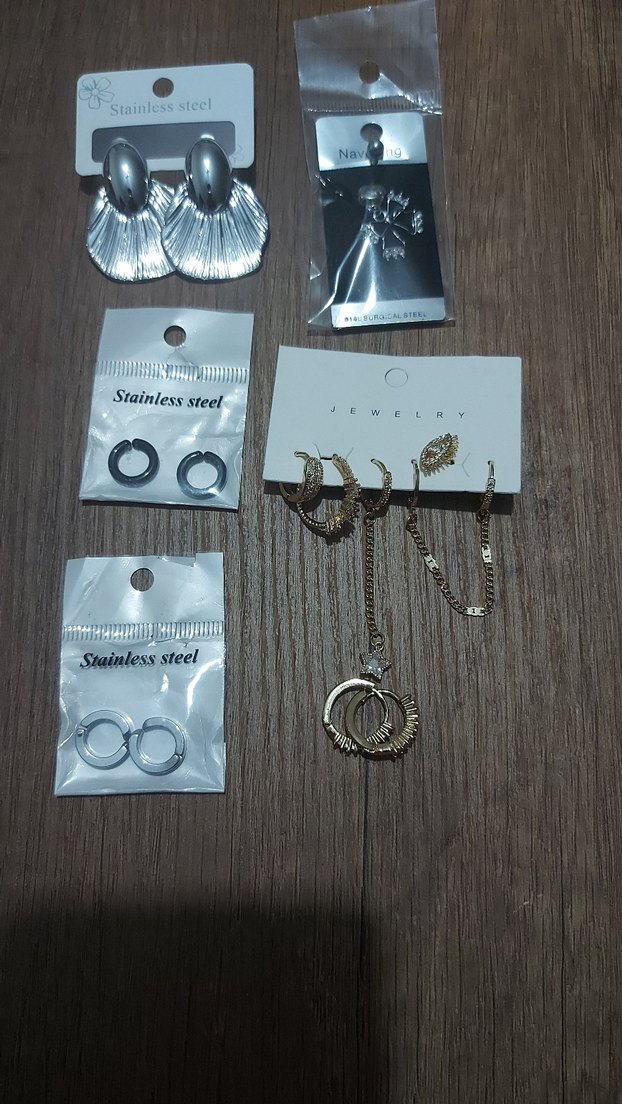 Paslanmaz çelikten yapılmış, baskılı ve payetli detaylara sahip kısa küpeler. Minimalist ve trend sokak stili için uygundur. ✨ Görselde olan küpelerin tamamı fiyat...