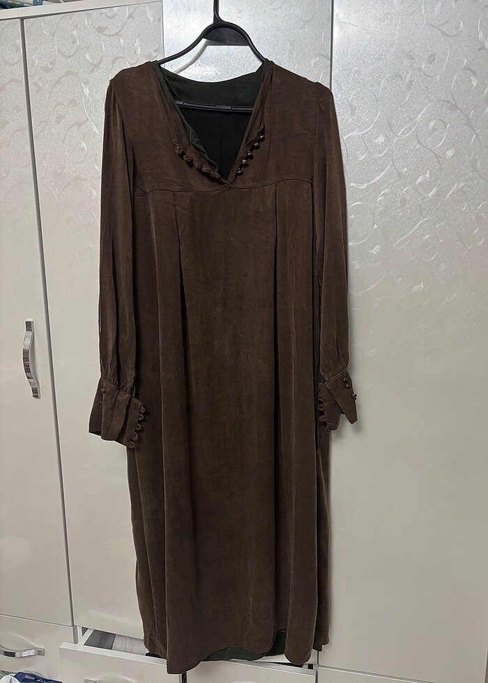 Acı kahve ipeker kumaştır terzim altını fazla kestiği için kısa geliyor sadece bir defa giyildi temiz dir Ölçüler en 48 boy 1.48 kol19