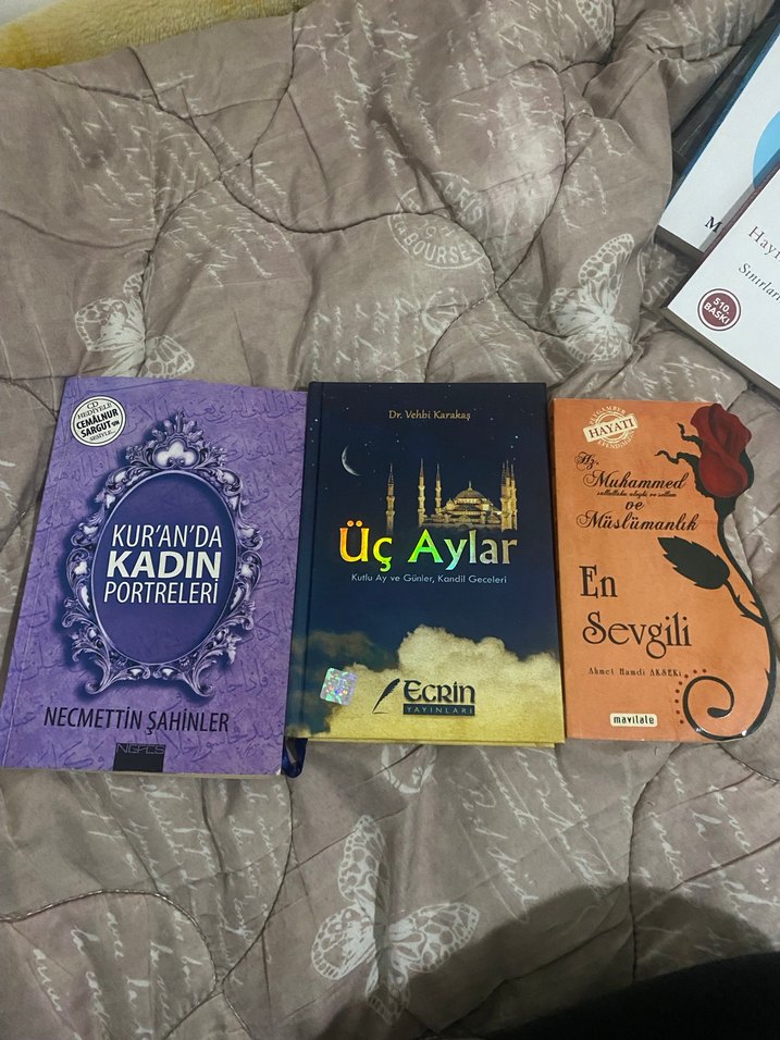 Necmettin Şahinler'in 'Kuran'da Kadın Portreleri', Dr. Vahdi Karakaya'nın 'Üç Aylar' ve İsmail Hakkı Uzunçarşılı'nın 'En Sevgili' kitapları bir arada.