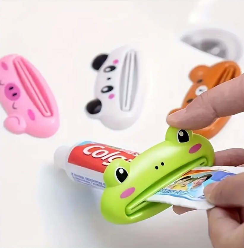 Kurbağa figürüne sahip, tüplerdeki ürünleri kolayca sıkmaya yarayan renkli sıkacaklar.