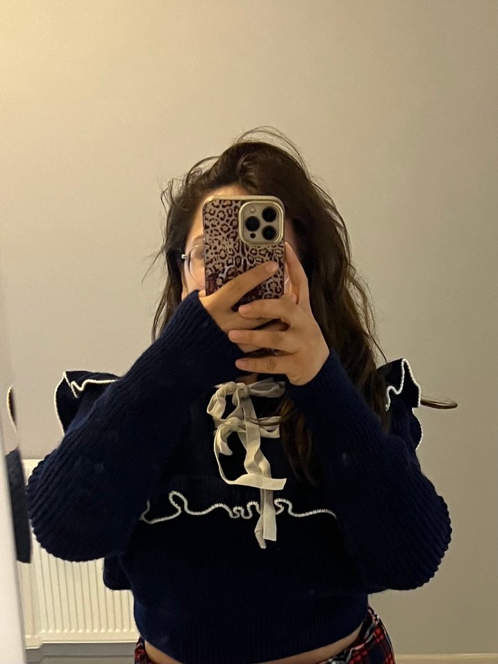 Vücuda oturan, kurdele desenli lacivert balıkçı yaka uzun kollu kazak, örgü kumaştan üretilmiştir. Günlük kullanıma uygundur.