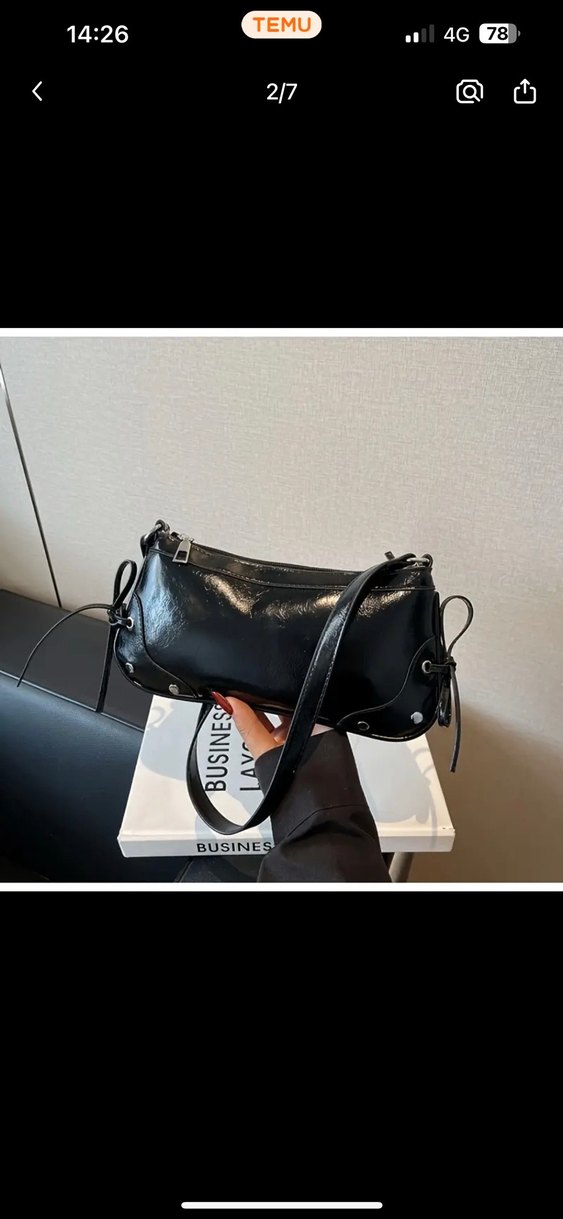 Tokalı tasarıma sahip siyah deri çanta, rock punk tarzında ve desen içermeyen yüzeye sahiptir. Günlük kullanıma uygun, rahat ve trend görünümlüdür.