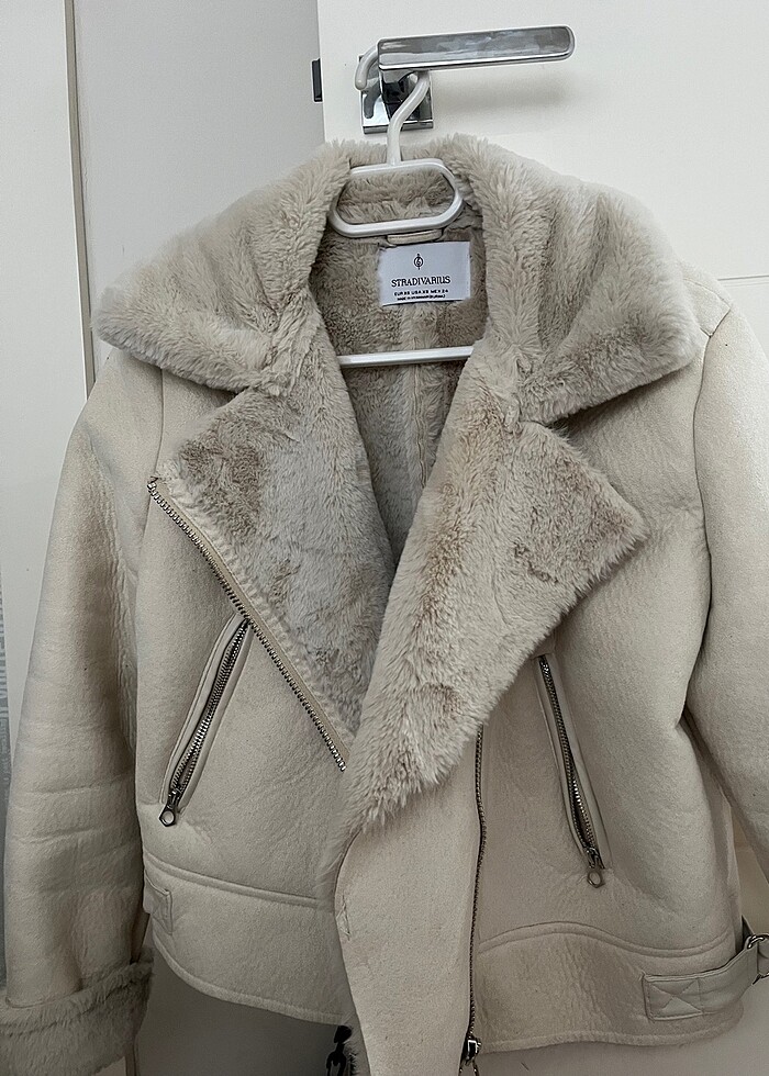 Stradivarius Kürk. Gözüken kısımda deformesi yoktur. İç kısmında koyulma mevcut fotoğrafını ekledim, giydiğim bir kıyafet renk verdi muhtemelen. Yıkanırsa veya kuru temizlemeye giderse geçer. Bu yüzden fiyatı makul tutuyorum. Kendi giydiğim fotoğrafımı da ekledim.