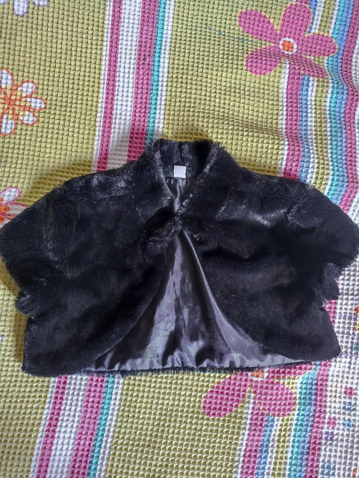Siyah, kısa kesim, kürk detaylı çocuk bolero. sağlam