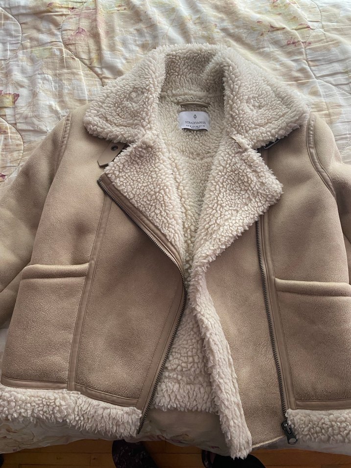 Bej süet kadın ceket, kürk detaylı yakası ve iç astarıyla rahat ve sıcak bir tasarıma sahip. Notlu yaka, normal midi boy ve sırtı dar kesimdir. Strappy kolludur.