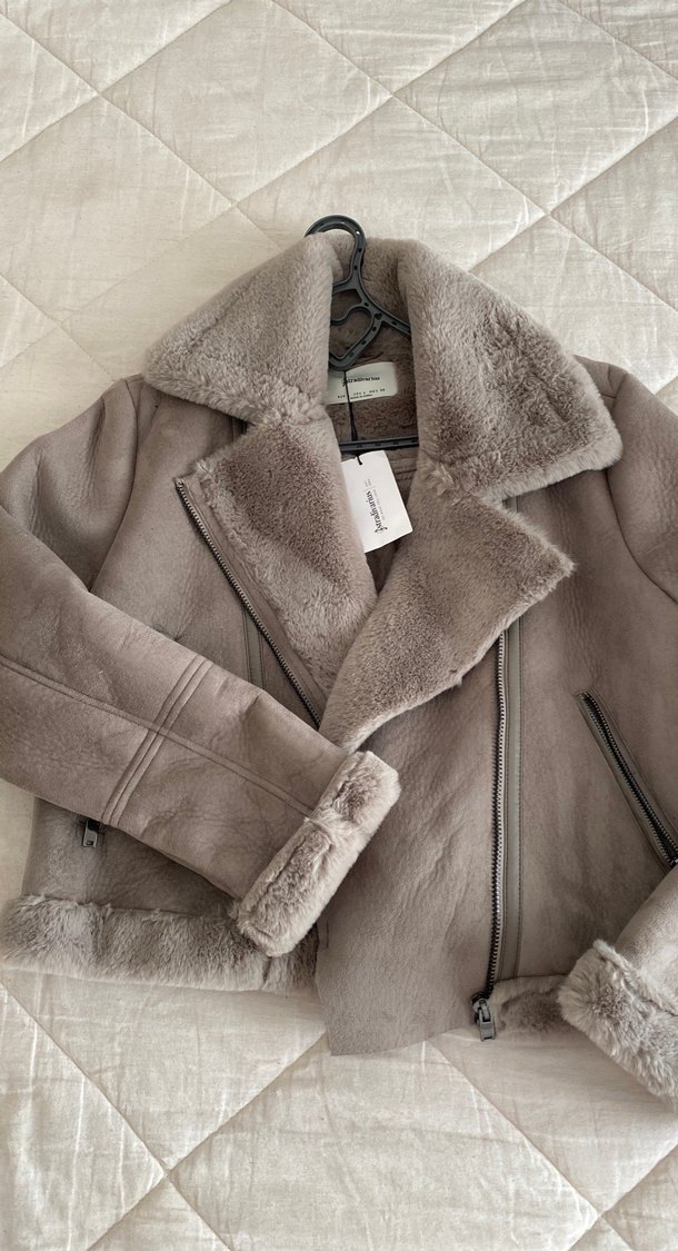 Kürk detaylı, süet kumaştan yapılmış, normal midi boyda ve kesimli kadın ceket. Sokak modasına uygun şık ve rahat bir parça.