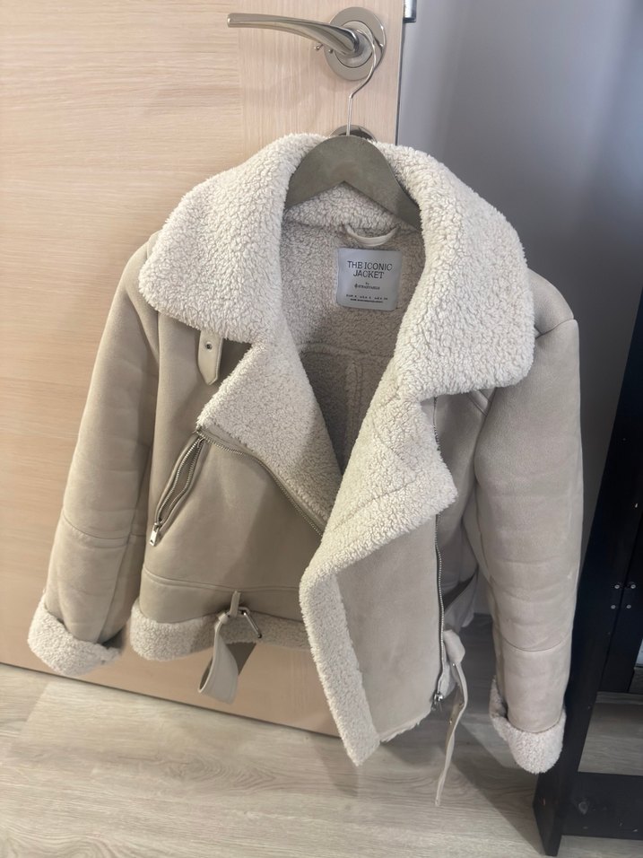 Bej süet malzemeden yapılmış, kürk detaylı, normal boy, kesimli kadın kışlık ceket. Notched lapel yaka ve rahat sokak stili tasarıma sahip. ❄️ kusuru yok kemerden kaynaklı ipleri kopmuştu tekrar diktim belli olmuyor