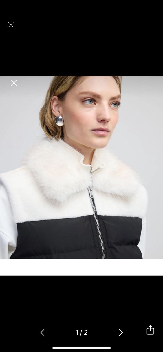 Kürk detaylı yakası, kolsuz ve kısa kesimiyle siyah beyaz detaylı şişme yelek. Yumuşak ve sıcak kumaştan, günlük kullanıma uygun şık bir parça. ❄️