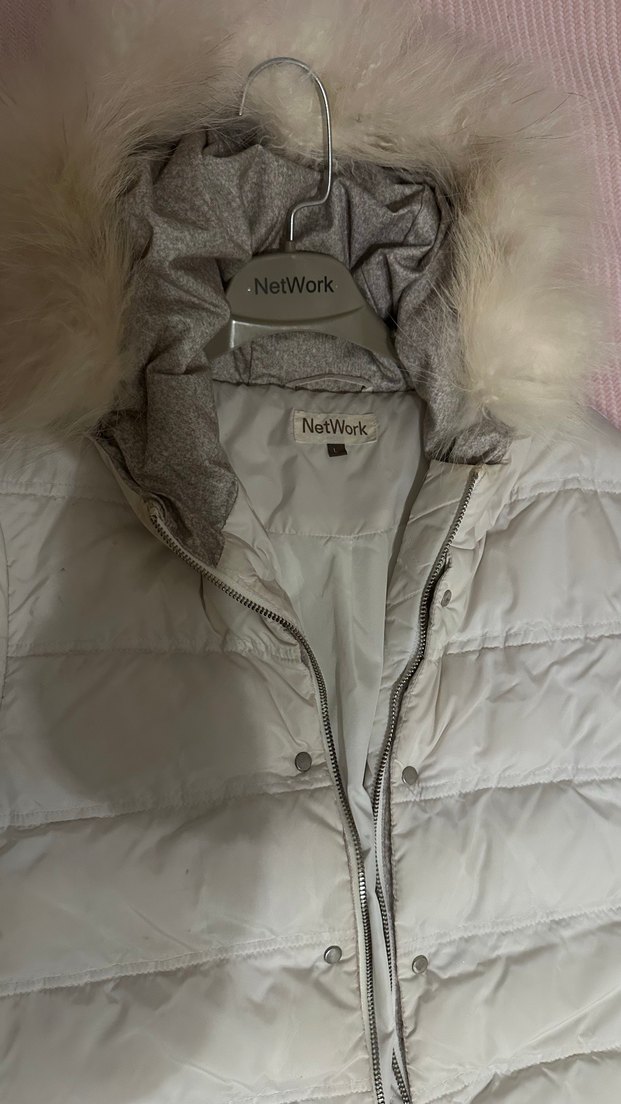 Yumuşak sentetik kumaştan yapılmış, kapüşonlu ve kürk detaylı kolsuz beyaz mont. Normal boyda, dar kesim ve desen içermez. Gençler için uygun, rahat dış mekan kullanımı için idealdir. ❄️