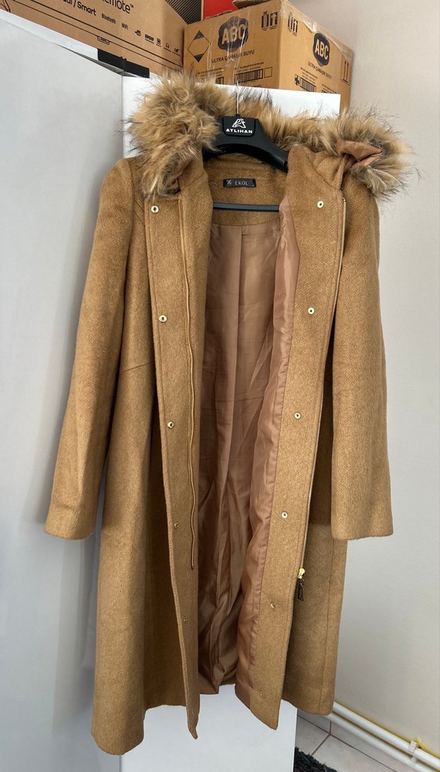 Tatlı bal rengi nerdeyse hiç giyilmemiştir 44 Beden 105 cnm uzunluk boyu kol uzunluğu 60 cm