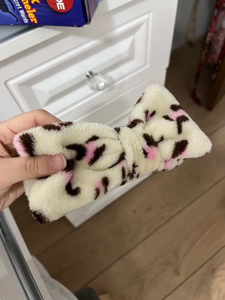 Kadın saç aksesuarı, yumuşak sentetik kumaş ve kürk detaylarıyla pastel çok renkli, rahat bohem tarzını yansıtıyor.