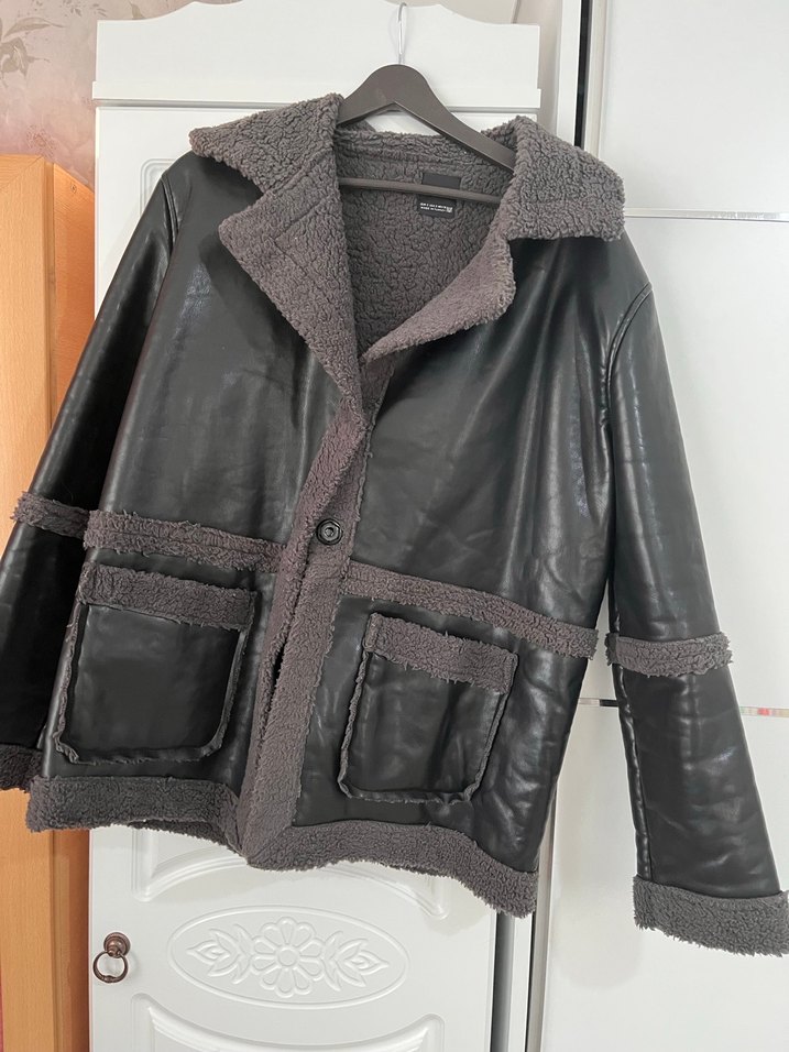 Kürk detaylı, kahverengi deri kadın ceket, geniş kesim ve yakasında kesimli yaka bulunur. Sokak stiline uygun, günlük kullanıma uygun rahat bir parçadır.