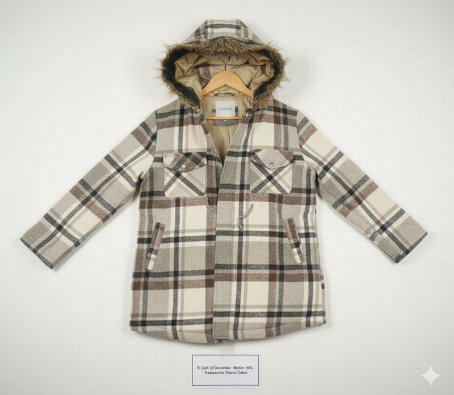 Kürk Detaylı Ekose Desenli hırka S beden