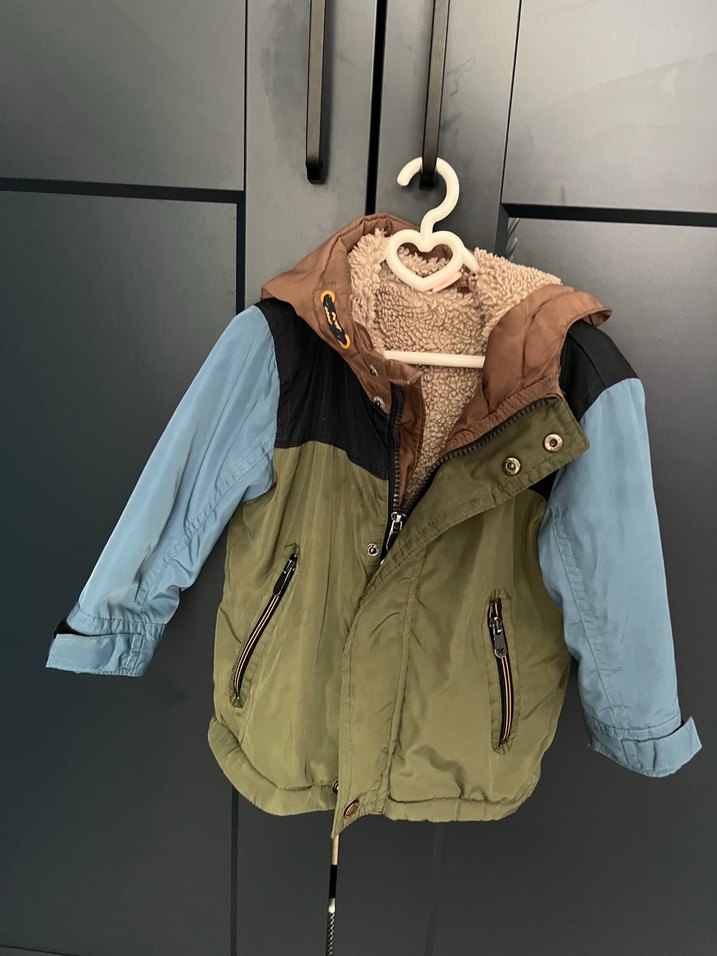 Kürk detaylı, notched lapel yakalı, rahat kesim erkek çocuk montudur. Gri ve kahverengi tonlarında, sokak stiline uygun, yumuşak ve sıcak kumaştan üretilmiştir. Sıfır ayarındadır, çok az giyildi.