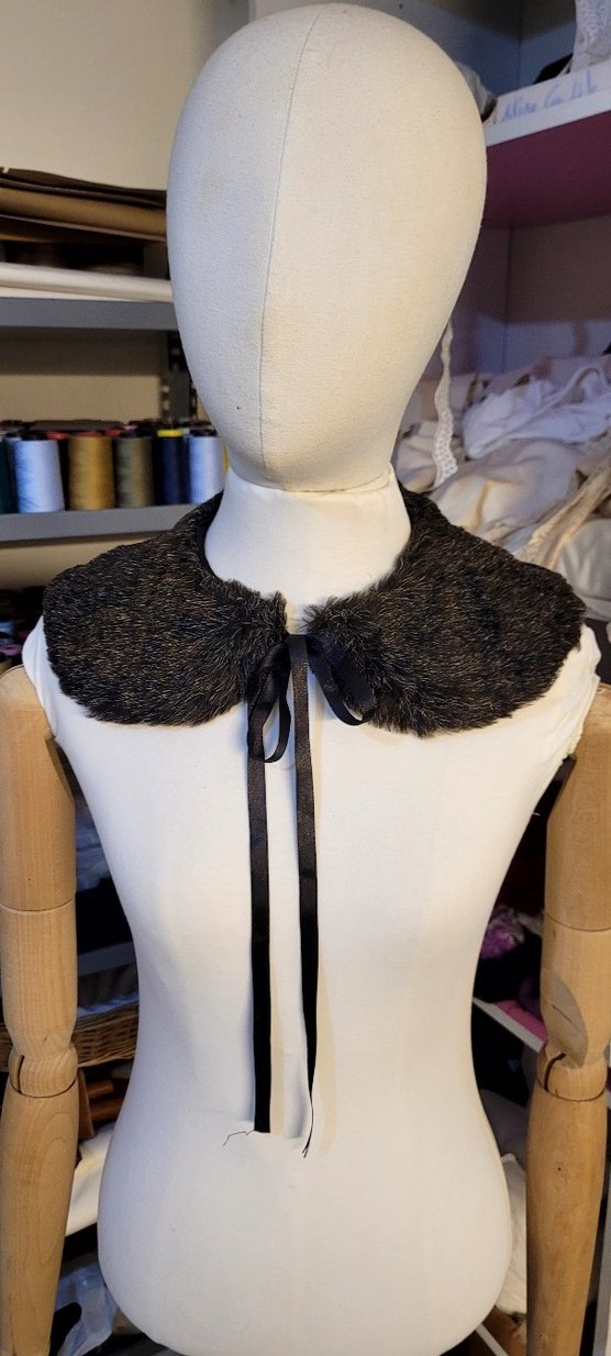 Kürk detaylı, bağlamalı, koyu gri renkte goth tarzı kedi yakası. Desensiz ve rahat tasarım.
