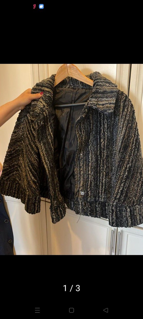 Gri renkte, kürk detaylı, uzun kollu, kısa ve bol kesim, Notch yakalı, sokak stiline uygun, günlük kullanıma elverişli.hamilelik dönemi için de rahatlıkla kullanılabilir. kol içlerinde gizli çıt çıt var. istenirse kollar sabit hale getirilebilir.