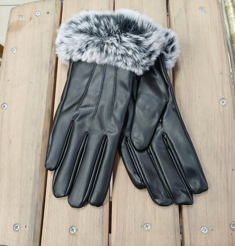 Kürk Detaylı Gri suni Deri Kadın Eldiveni