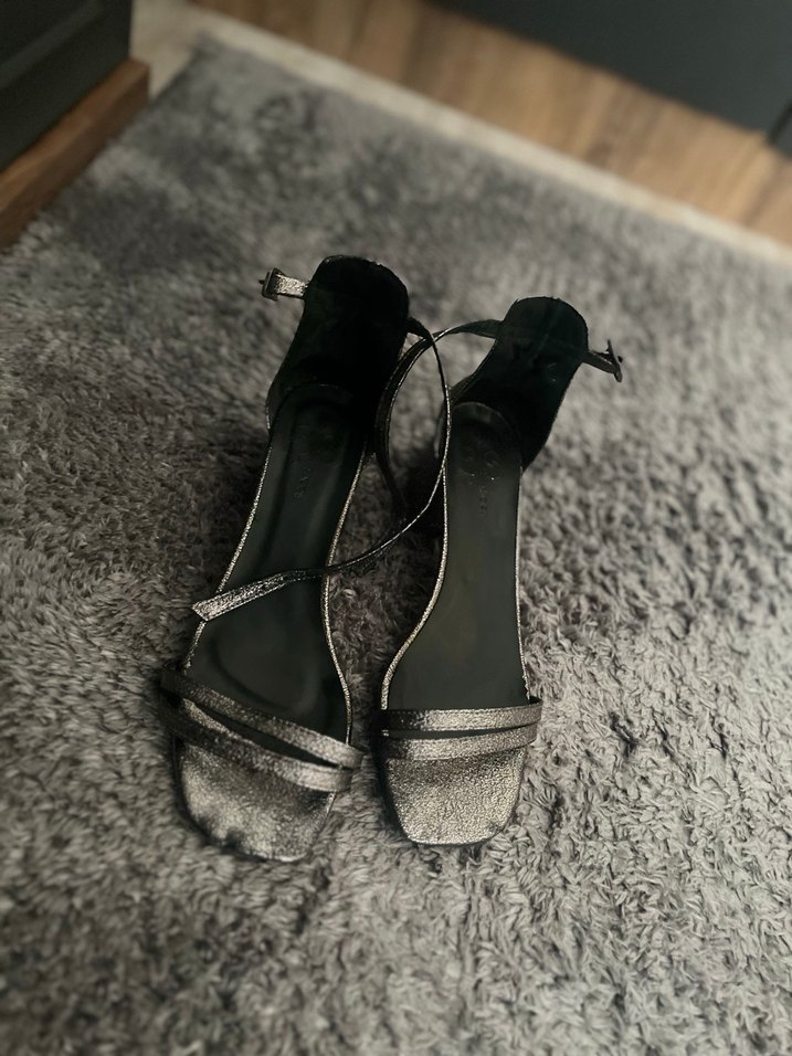 Kürk detaylı, yılan desenli gri ince topuklu kadın ayakkabısı, romantik akşamlar için uygun ve çağdaş tarzda.