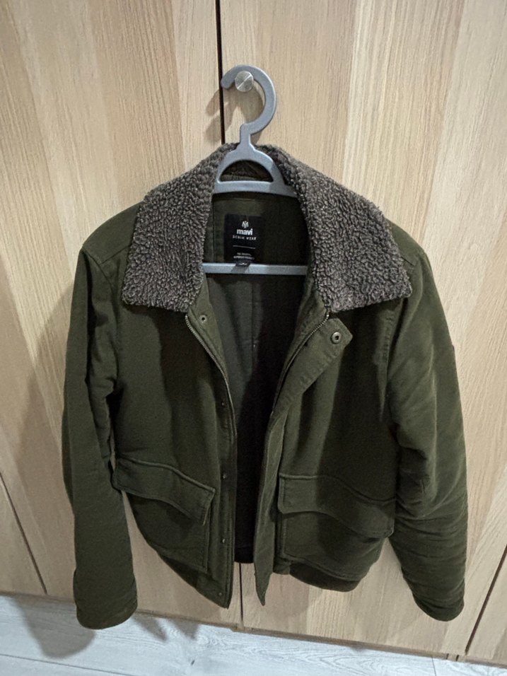 Bu erkek ceketi, uzun kollu ve kürk detaylı yakaya sahip, vücuda oturan kesimde ve normal boyda. Günlük kullanıma uygun, haki renkte ve yumuşak, sıcak kumaştan üretilmiştir. Pazarlık sünnettir.