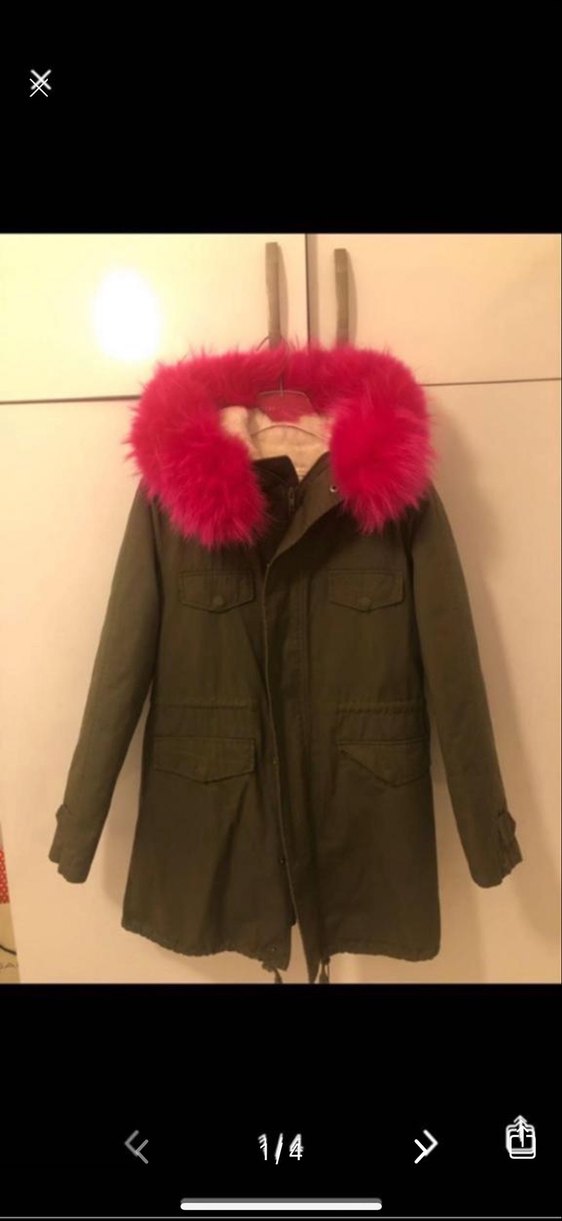 Kürk detaylı kapüşonlu, uzun kollu, normal boyda, rahat ve sıcak dokulu kadın kışlık mont.
