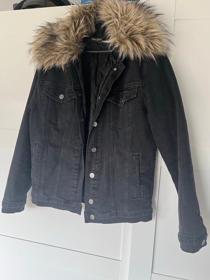 Fitted kesim, uzun kollu, denim ceket, kürk detaylı yakasıyla rahat ve şık. Günlük kullanım ve sokak stiline uygun.
