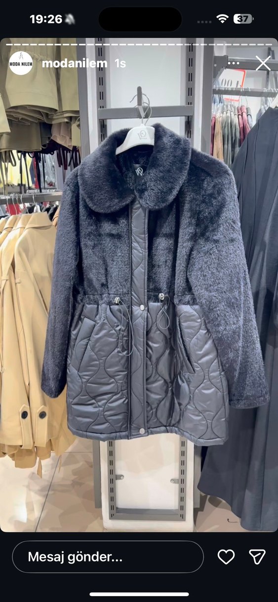 Sm beden Kürk detaylı yumuşak yaka ve kapitone alt kısmı olan kadın kısa kaban. Salaş kesim, uzun kollu ve yakalı, rahat sokak tarzı için uygun.