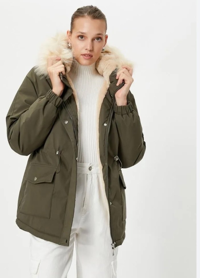 Kürk detaylı kapüşonlu, bol kesim, uzun kollu kadın kışlık mont. Bej renkte, normal midi boyda, sentetik kumaştan üretilmiştir. Rahat sokak stiline uygundur. ❄️