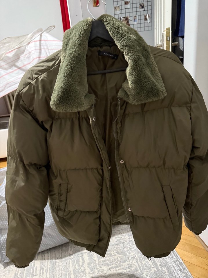 Kürk detaylı yaka, uzun kollu ve normal boyda kadın kışlık mont. Yumuşak ve sıcak kumaştan, sokak stiline uygun, sade ve şık tasarım.