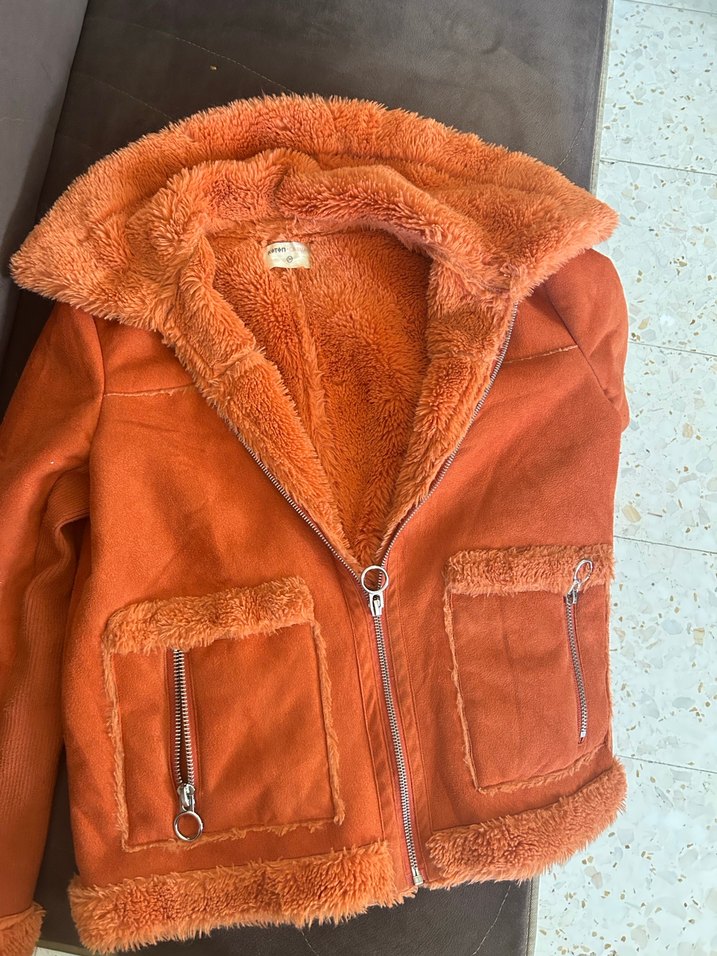 Kadınlar için kapüşonlu, uzun kollu, fitted kesim süet mont. Kürk detayları turuncu rengiyle rahat ve şık bir sokak stili sunar. Sadece kol altlarında hafif tiftiklenme vardır temizlenebilir onun dışında herhangi bir sorun yoktur