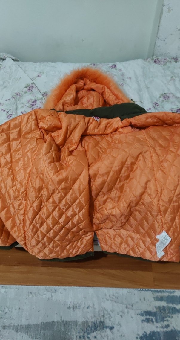 Kürk Detaylı Kadın Turuncu Kış Montu