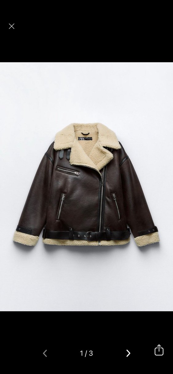 Kahverengi deri biker ceket, kürk detaylı yaka, manşet ve etek kısmıyla donatılmıştır. Notlu yaka, askılı kol ve rahat kesimle günlük kullanıma uygundur. ✨