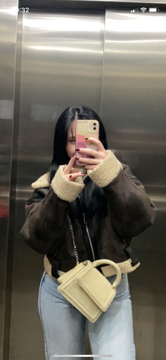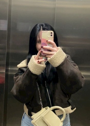 Kahverengi deri kadın ceket, kürk detaylı, yakası kesikli ve fermuarlı ceplidir. Normal kesim, kayışlı kollu ve midi uzunluktadır, rahat sokak stili için uygundur.