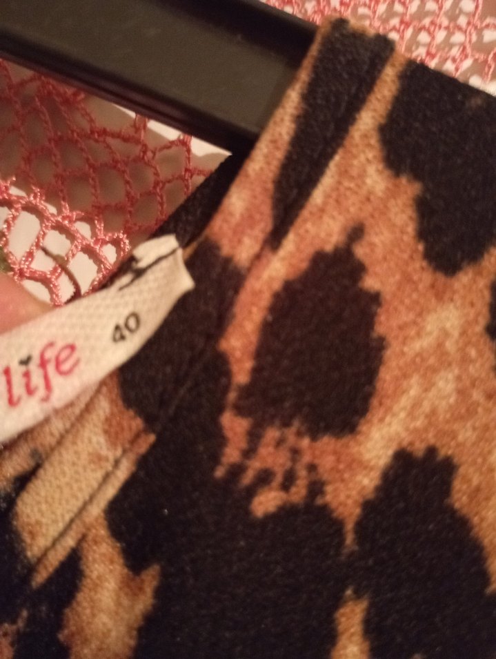 Kürk detaylı, kahverengi desenli bohem tarzı kedi kıyafeti, 40 beden.